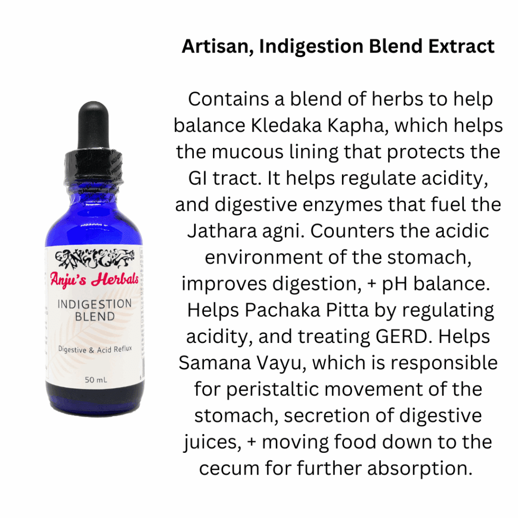 Pacifies the Pitta dosha, helps with nausea, diarrhea, hyperactive stomach, and diarrhea associated with nervousness + anxiety.